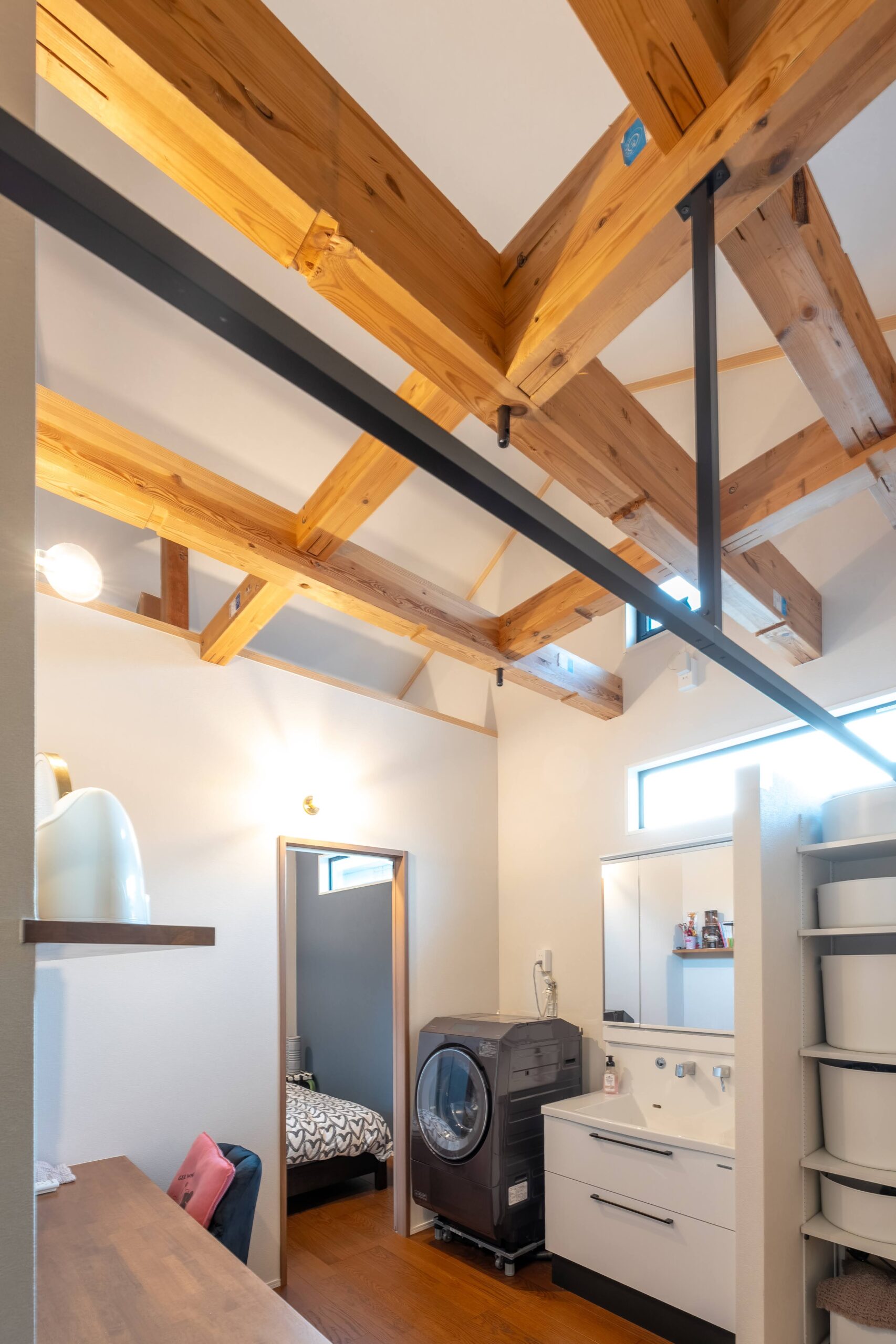だからこそ、天井で区切らずに開放感のあるバスルームが可能になるのです。