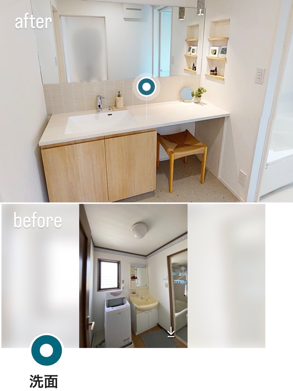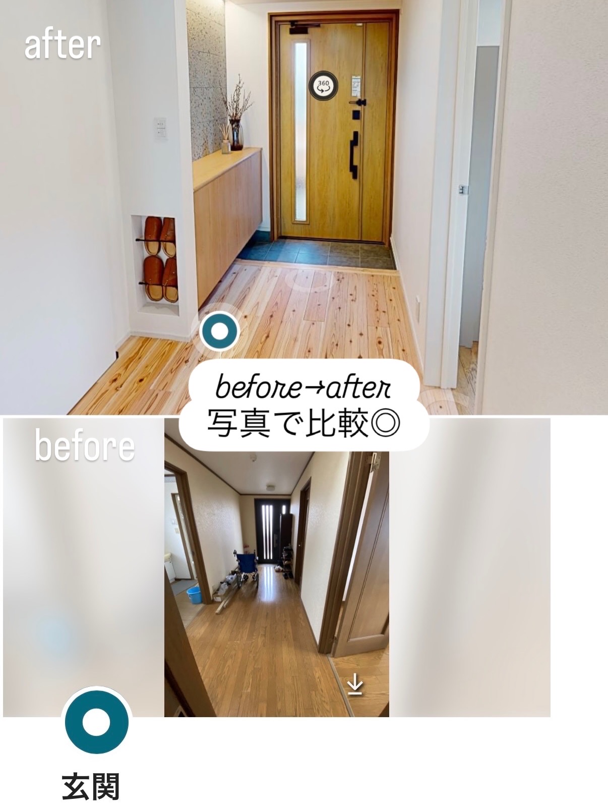 モデルルームのビフォーアフターを一目で比較できるので、「どんな工夫で居心地が良くなったのか」「家具のレイアウトはどんな風に変わるのか」など、リノベーションのヒントにもなります。