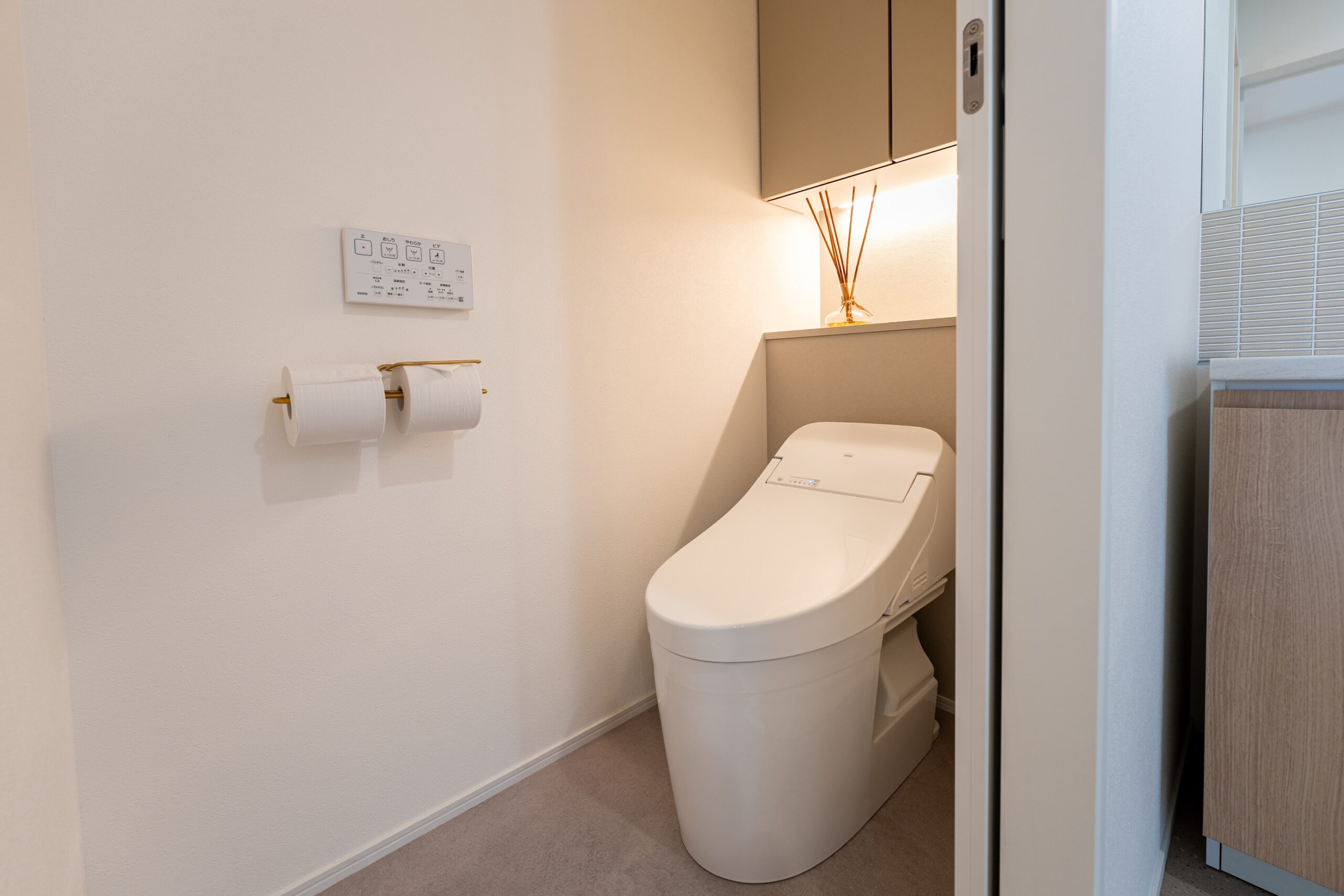 光を壁面や天井に反射させて、やわらかく空間を包み込むこの手法が、トイレの印象を一瞬で洗練されたものに変えてくれます。