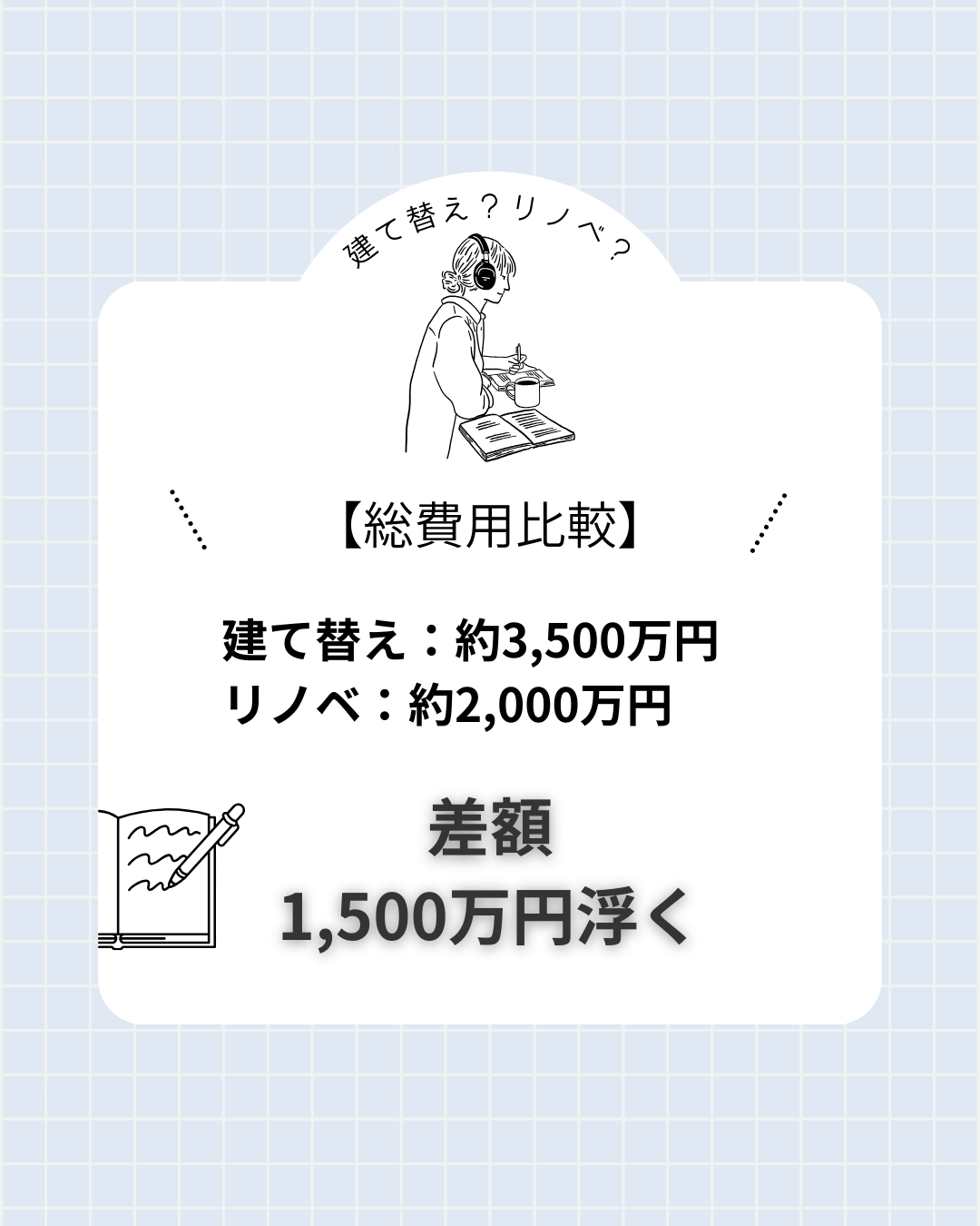 1. 総費用:建て替え3,500万円 vs 「耐震2倍」リノベ2,000万円