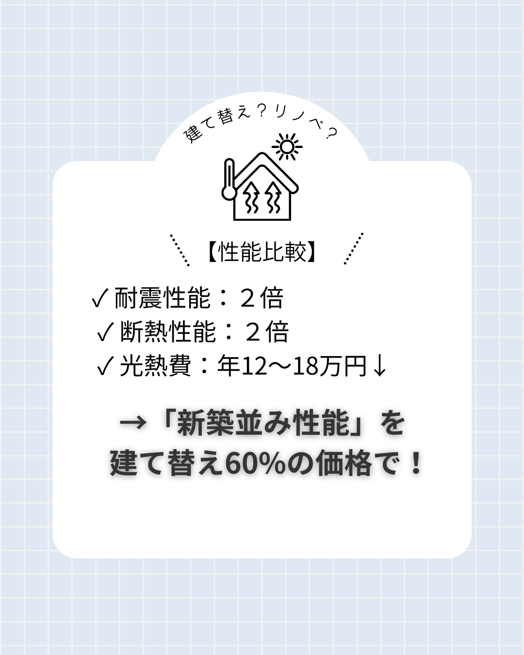 2. 性能比較:耐震2倍・断熱2倍で新築超え