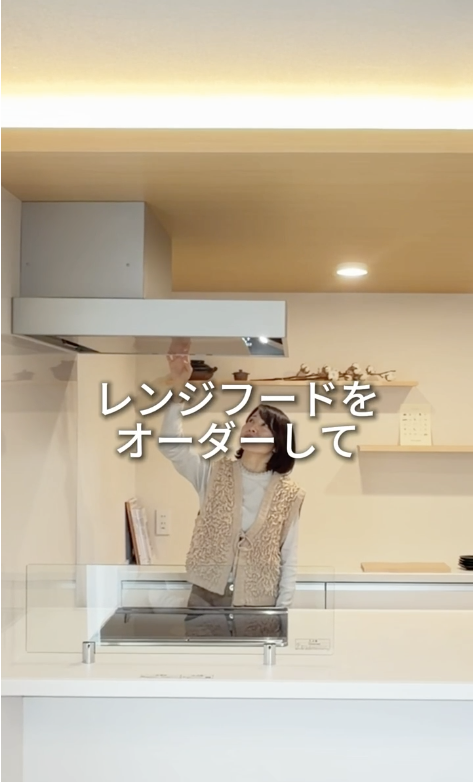 この実例では、リノベーション時にオーダーで高さ調整が可能なレンジフードを採用。