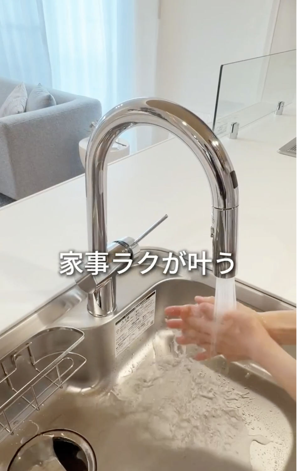 「触れずに操作できる」ことは、家事をラクにするだけでなく、キッチン周りをいつでも清潔に保つ大きな助けになります。これもまた、“家事ラク”を叶える重要なポイントです。