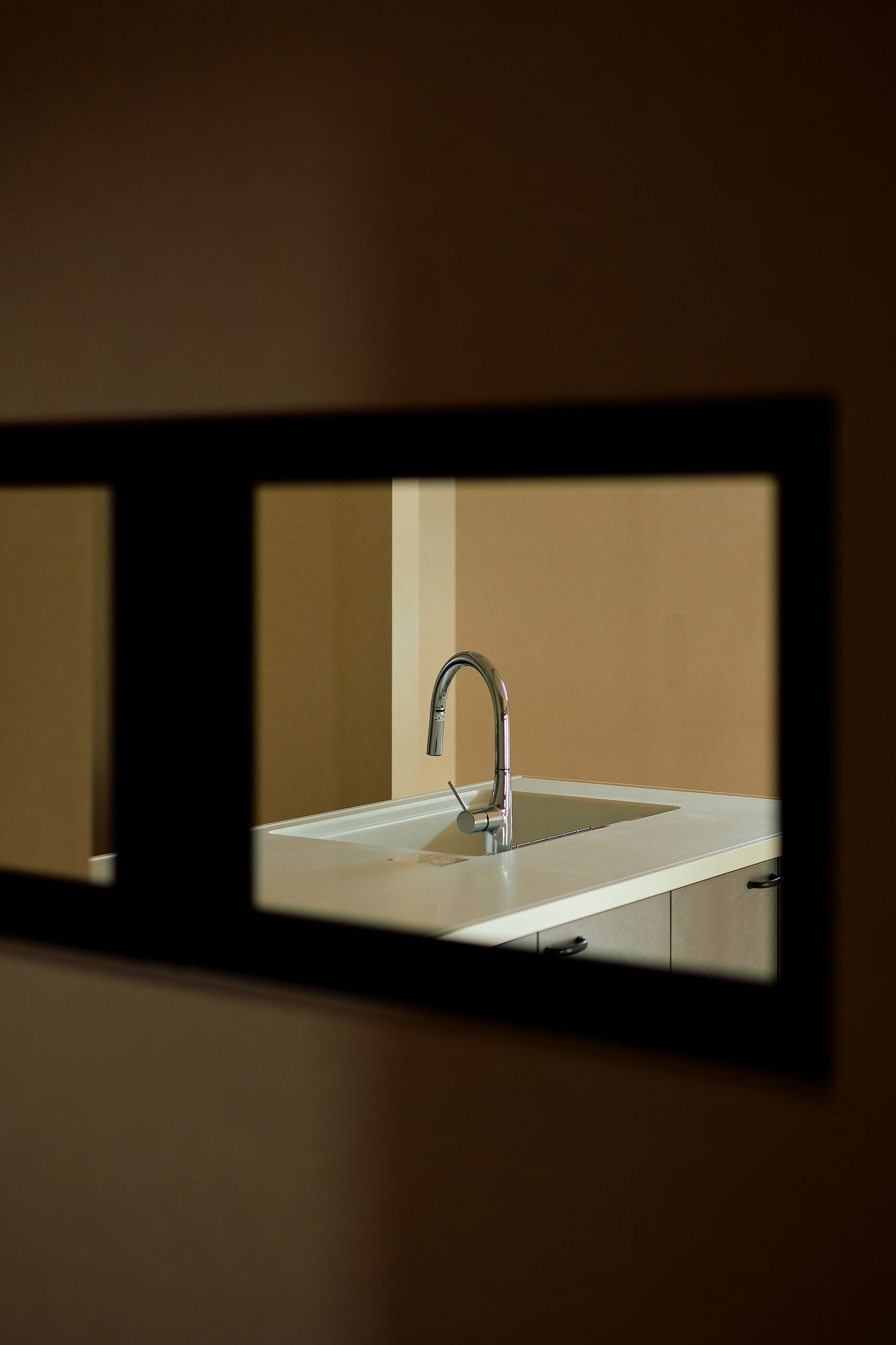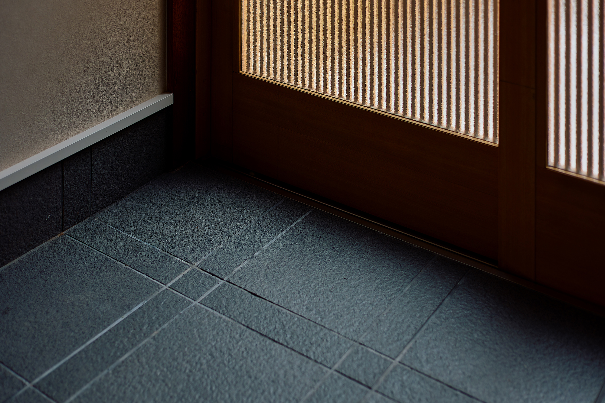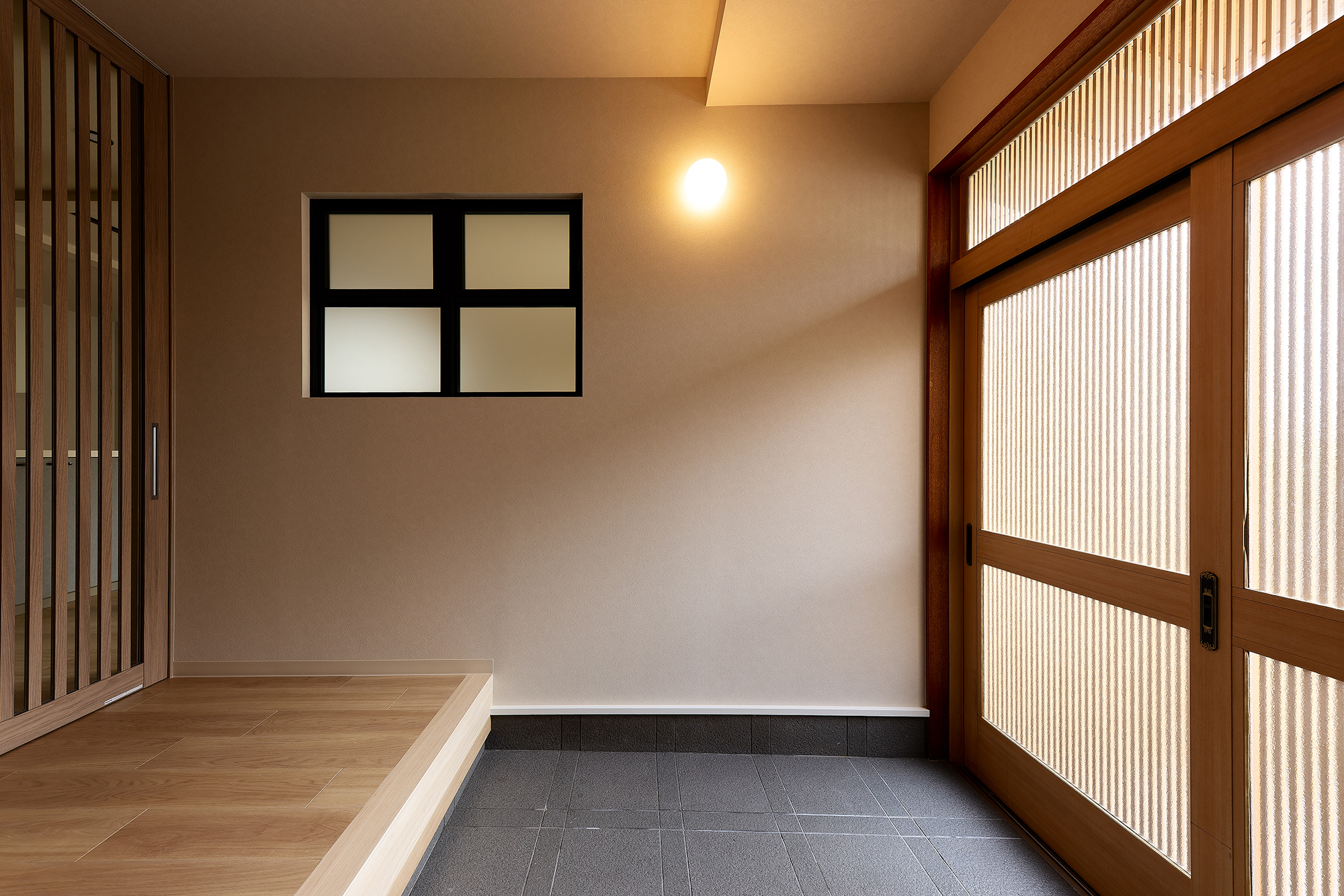 なかでも、格子ドア室内窓が空間の印象を決めるポイントになっています。