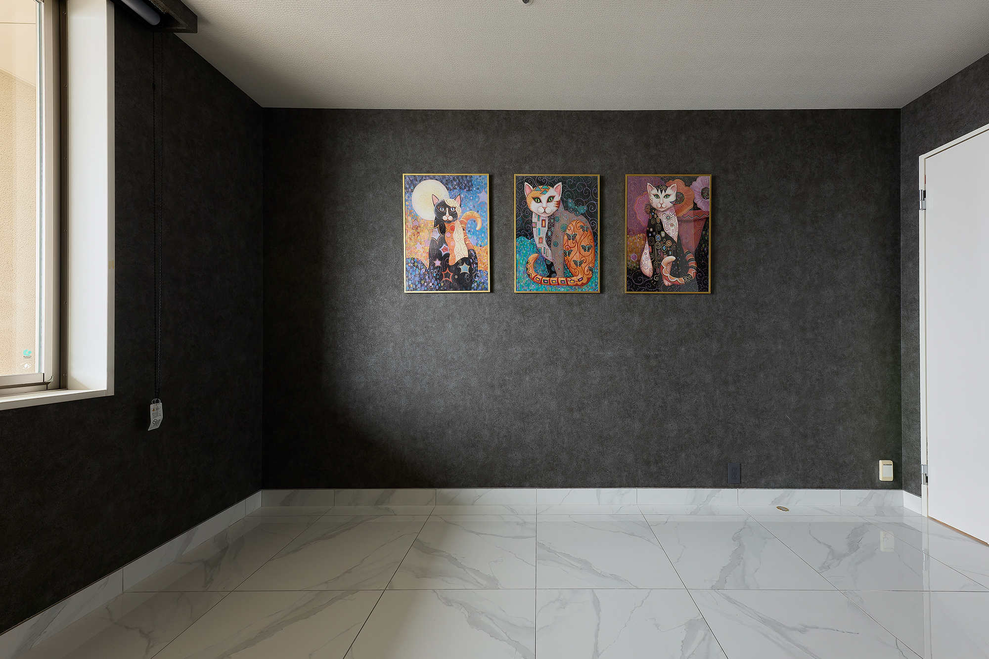 大胆な柄なのに上品で、まるでアートピースのような存在感。訪れる人を即座に引き込み、この住まいの世界観をビシッと印象づけます。