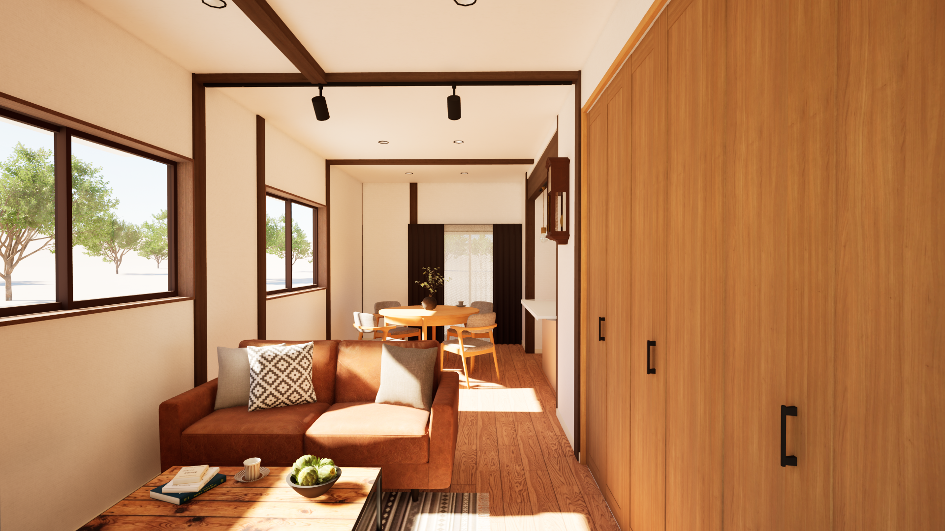 2、和室の梁を残した、和×カントリーの空間。