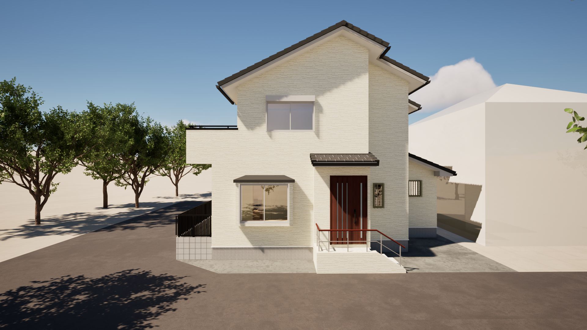 ナチュラルで上品なホワイトの外観が街並みにやさしくなじみ、